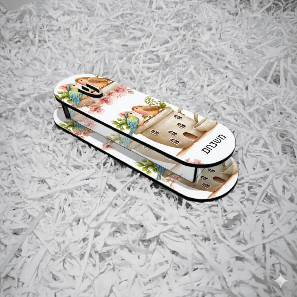 שלט מגנטי מלבני מעוצב לדלת הבית בכיתוב אישי- דגם זוג ציפורים