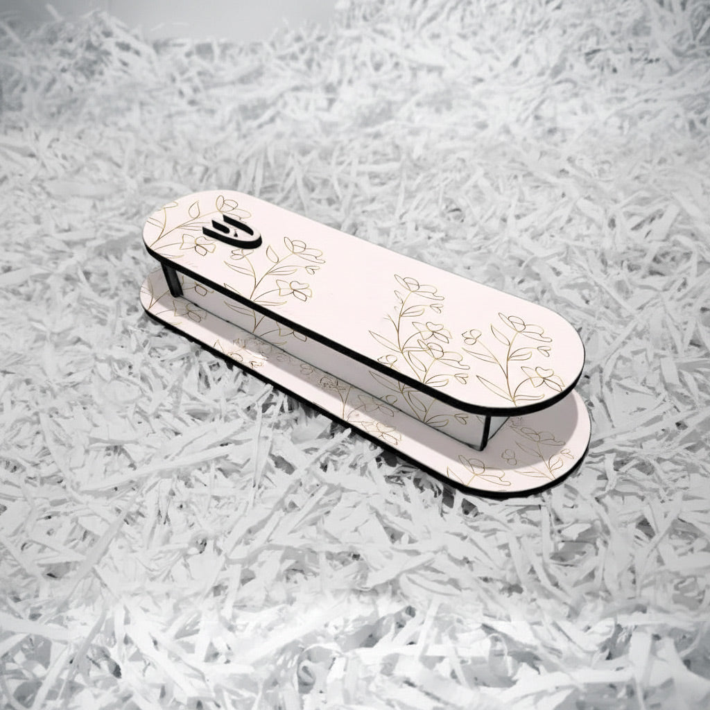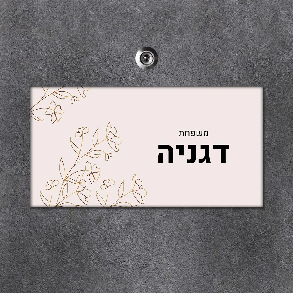 שלט מגנטי מלבני מעוצב לדלת הבית בכיתוב אישי- דגם פרחים בקו מוזהב