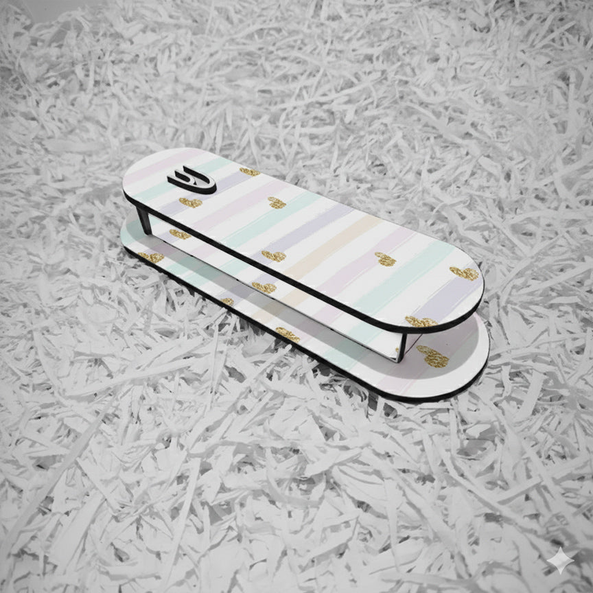 העיצוב משלב לבבות מוזהבים עדינים עם פסים מודרניים ליצירת ניגוד מיוחד.