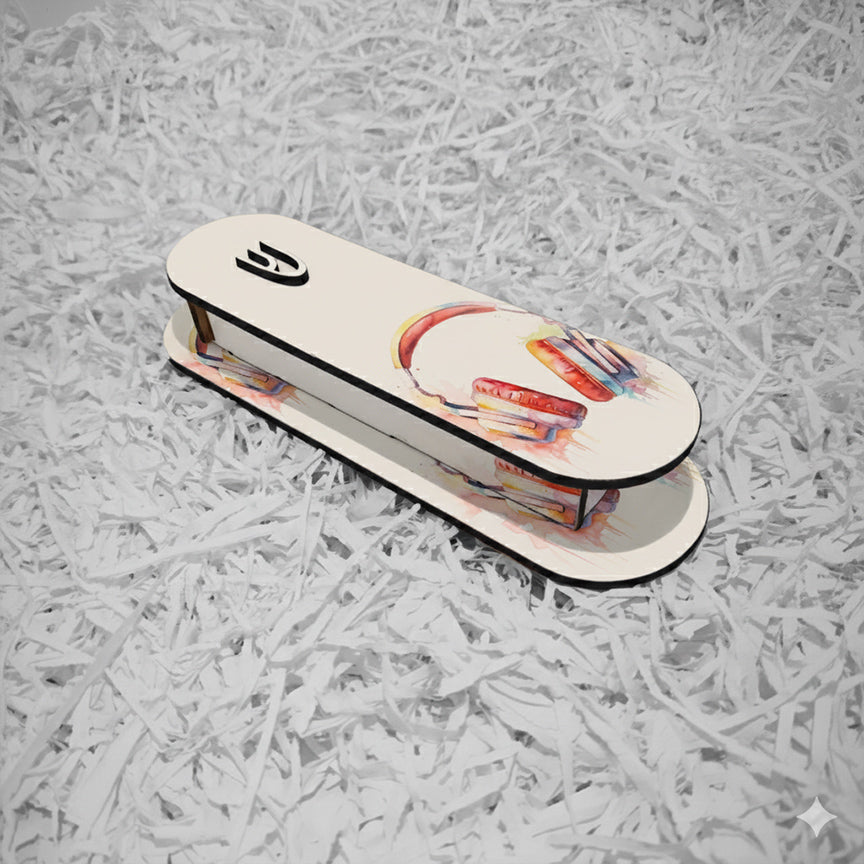שלט מגנטי מלבני מעוצב לחדר נוער בכיתוב אישי – דגם אוזניות מעניק לחדר תחושה אורבנית צעירה עם עיצוב נקי ומדויק.