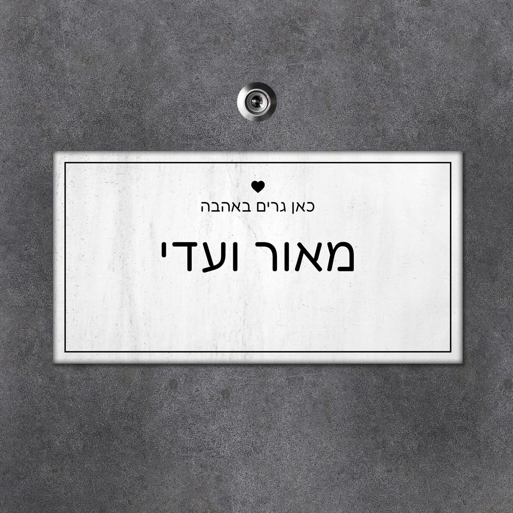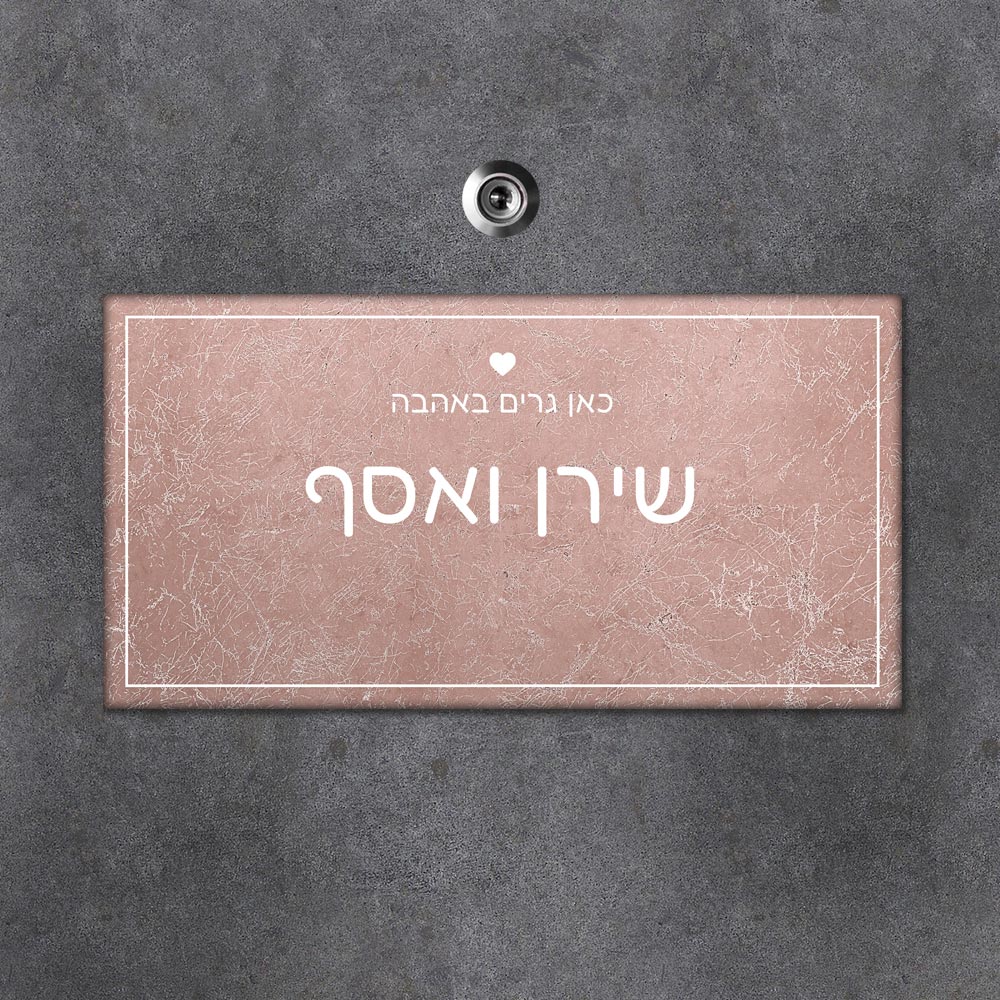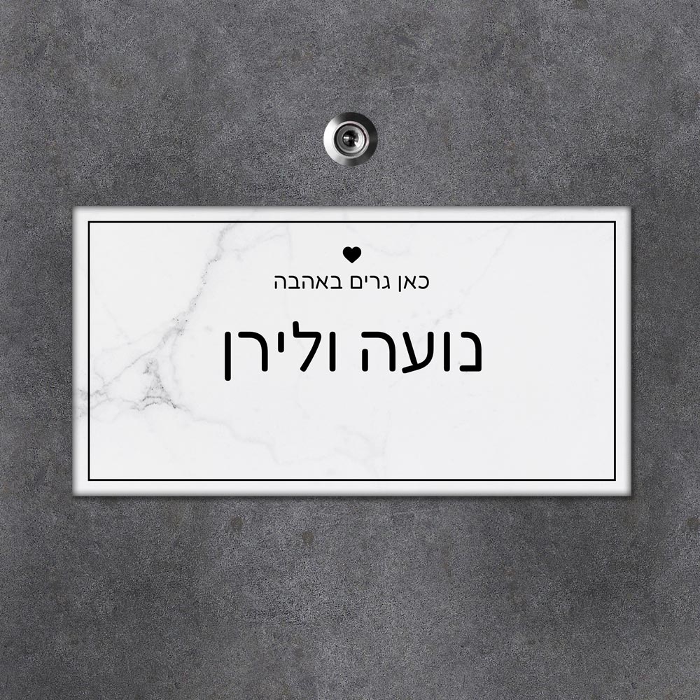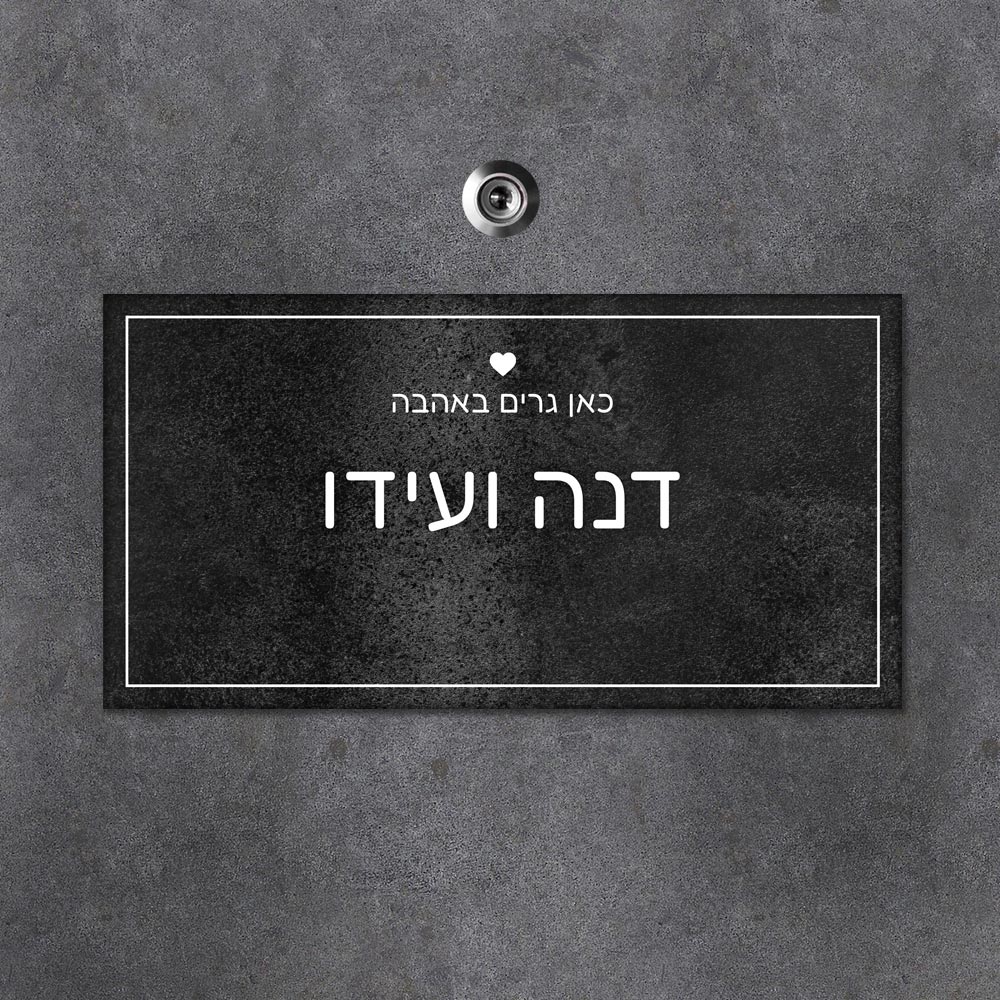 שלט עץ מלבני לדלת הבית בכיתוב שמות בני הזוג - דגם שיש אפור - שלט לדלת