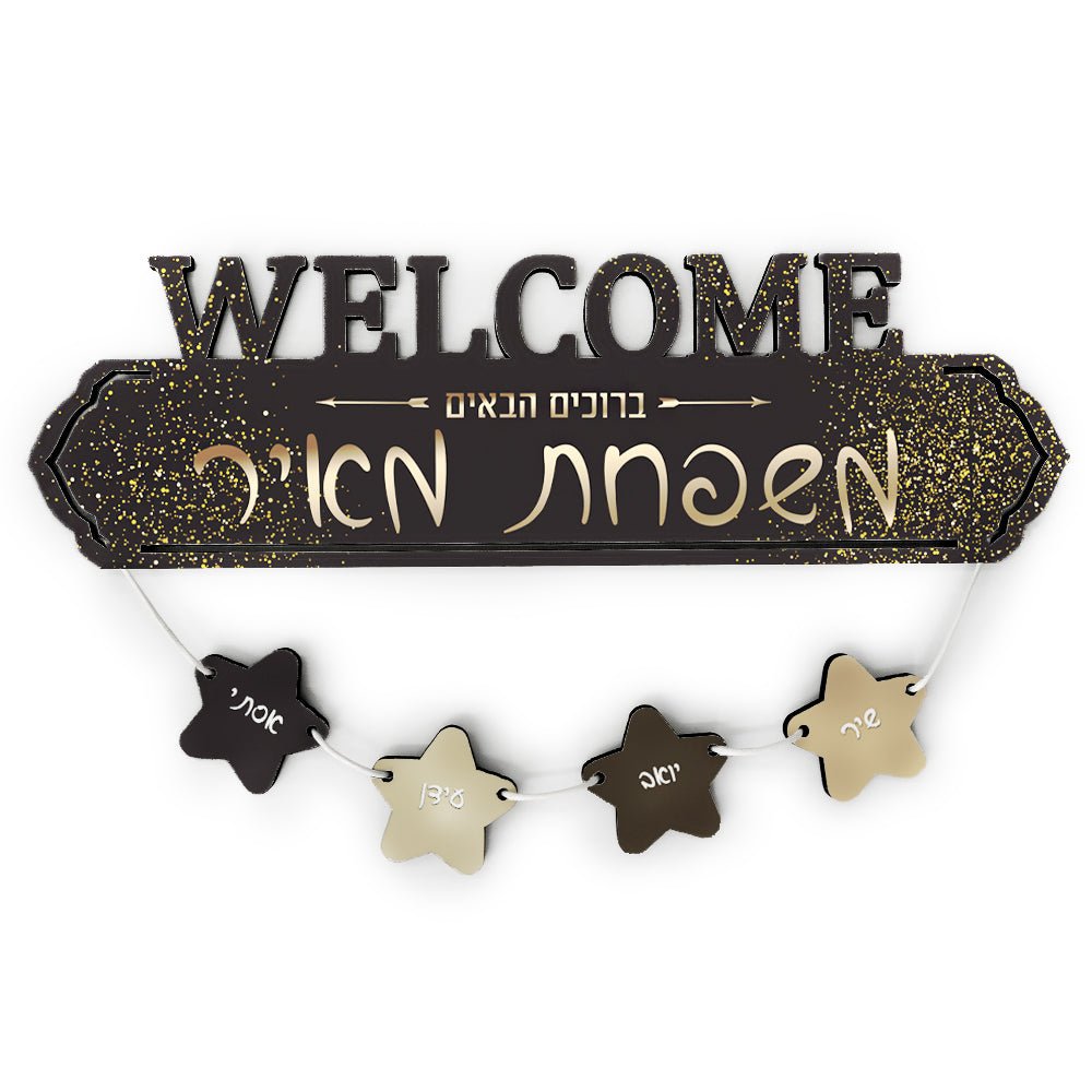 זהו שלט לדלת בעיצוב אישי שבו ניתן לשלב שם משפחה, ברכה חמה או הקדשה מיוחדת, ולהפוך את הדלת לפרט שמבליט את אופיו של הבית.