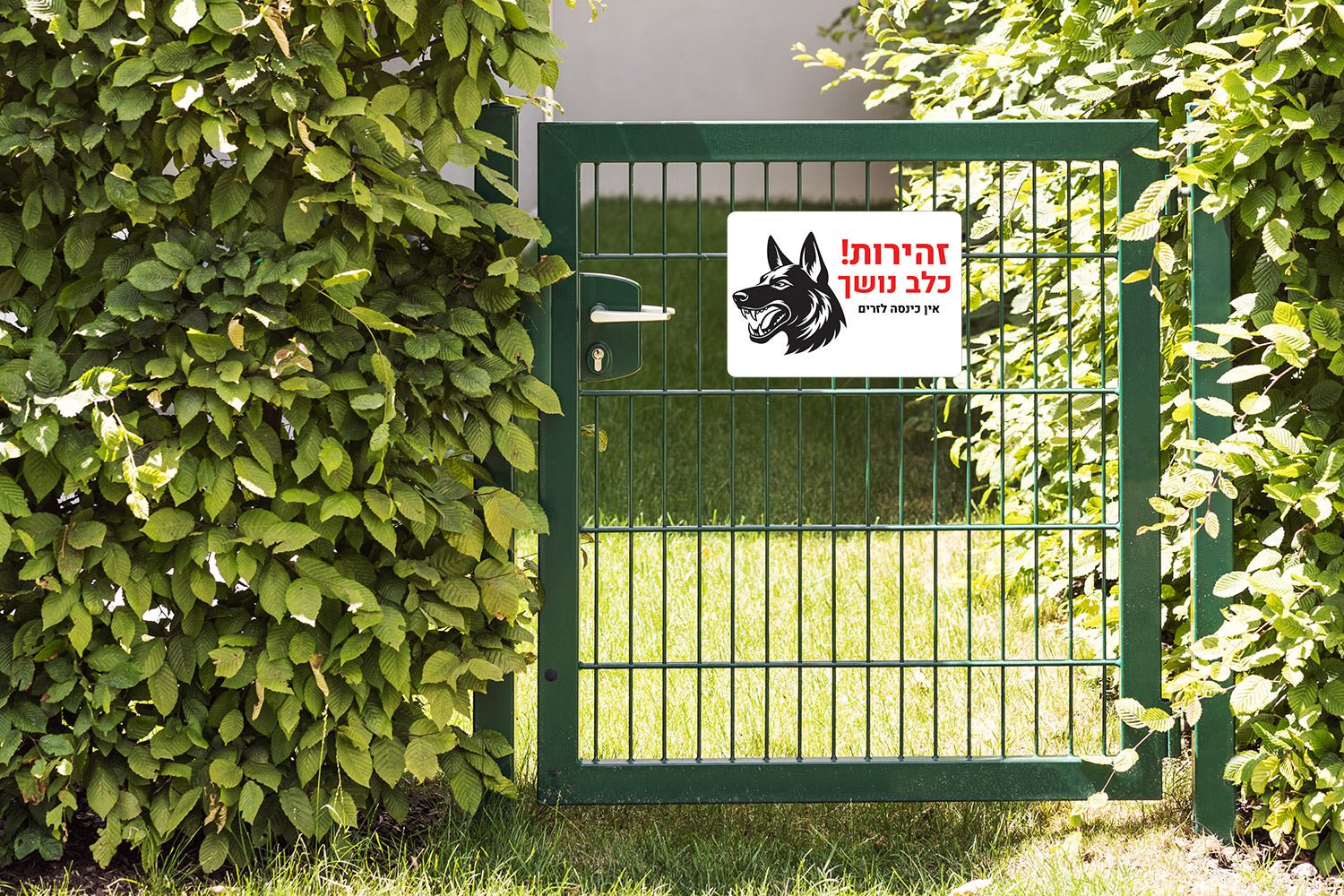 כיתוב כפול (כלב + אין כניסה) הרתעה פסיכולוגית כפולה. מונע כניסת פורצים ומסיגי גבול יומיומיים כאחד.