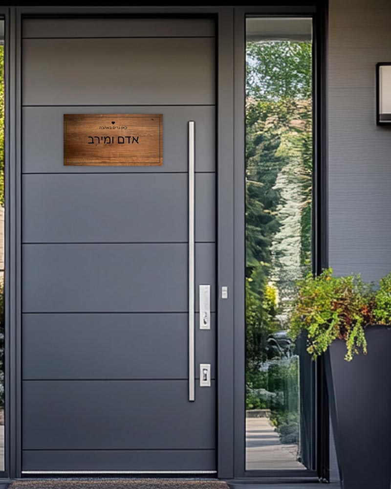 השלט משתלב היטב עם דלתות עץ וגם עם דלתות מתכת מודרניות.