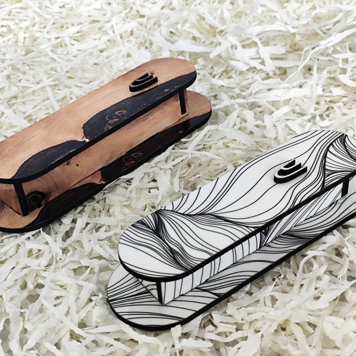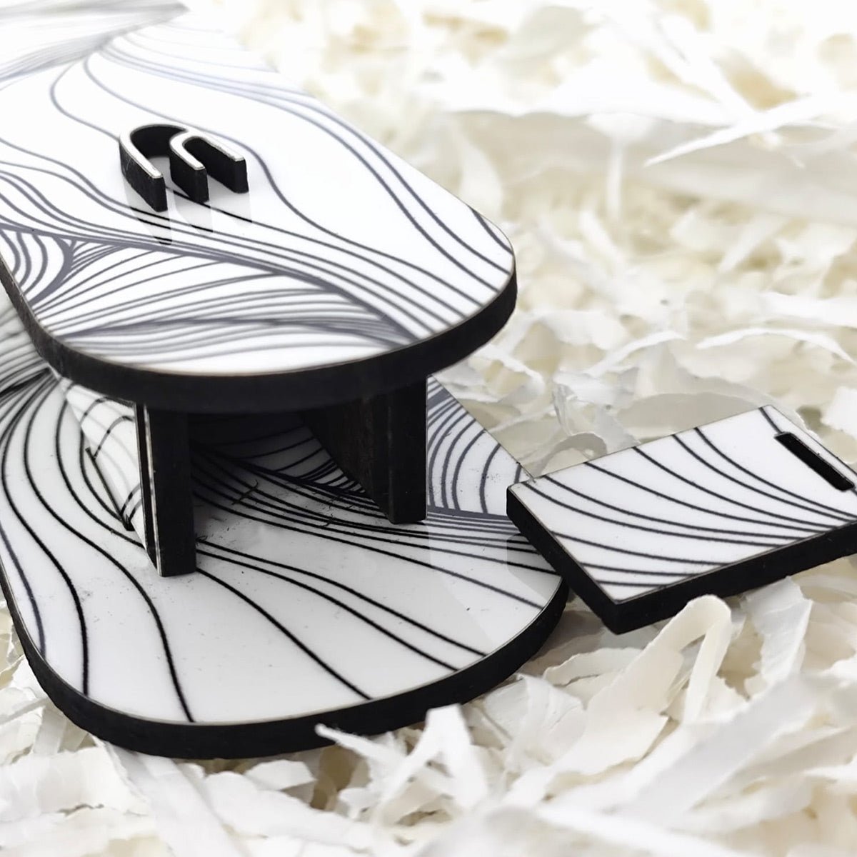 שלט מגנטי מלבני מעוצב לדלת הבית בכיתוב אישי - דגם טקסטורת פריחה שחור לבן - שלט לדלת