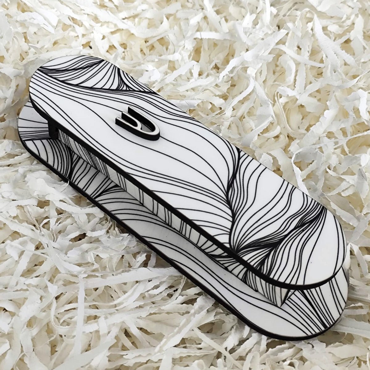 שלט מגנטי מלבני מעוצב לדלת הבית בכיתוב אישי – דגם טקסטורת פריחה שחור לבן מציע מראה קלאסי ונצחי.