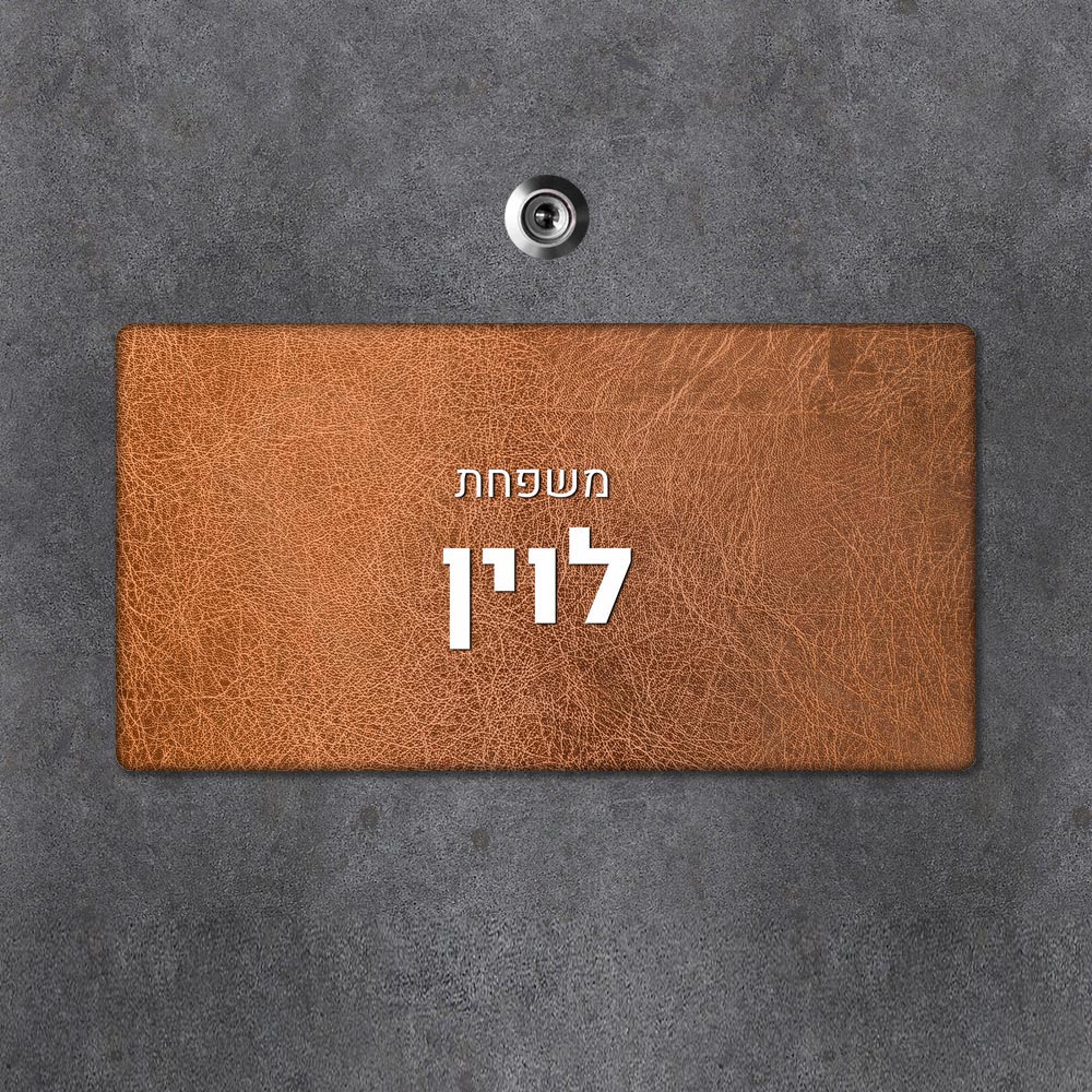 שלט מגנטי מלבני מעוצב לדלת הבית בכיתוב אישי- דגם עור חום